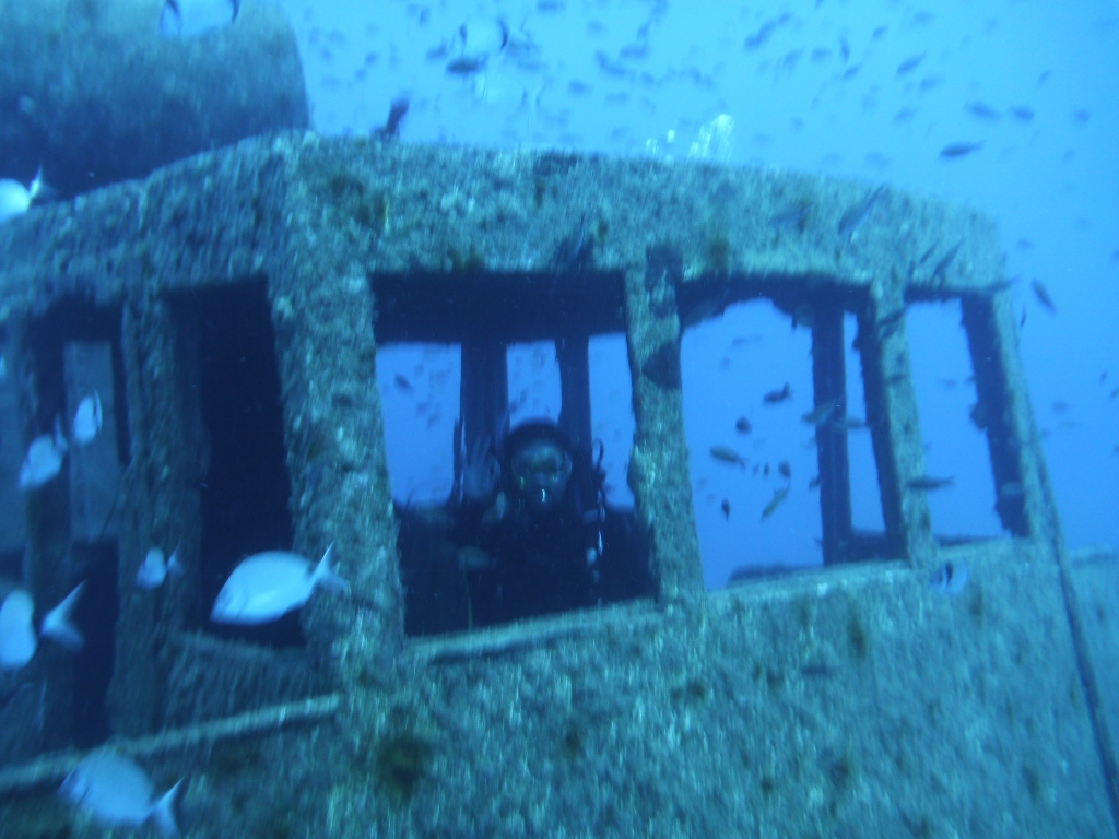 As we kitted up I was feeling optimistic that my cold was clearing up but after only 4.2 metres my ears became painfully blocked and I had to surface. The divemaster told me to remain at the surface and took the other pleasure divers down to enjoy the wreck. I was disappointed but continued to snorkel (and blow as much mucous from my passages as possible) and the visibility was so good that I could see much of the shallow wreck although the bubbles from my fellow divers were taunting me. I texted Al afterwards to joke that I was doing my 4m rescue diver (being a precursor to Master Scuba Diver) but felt that it may have been a day off work wasted.
