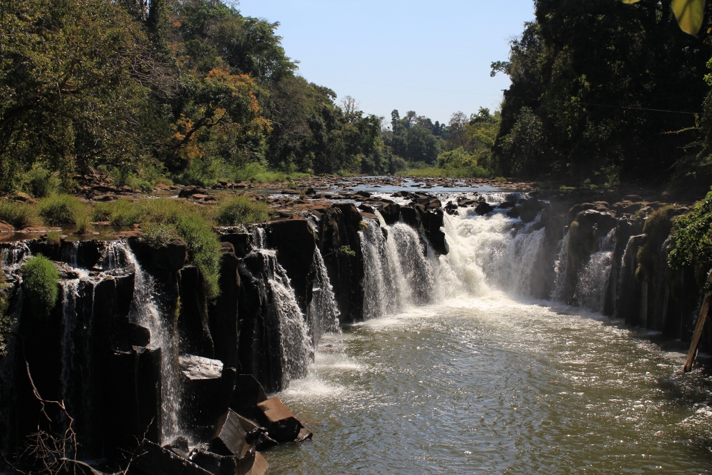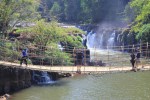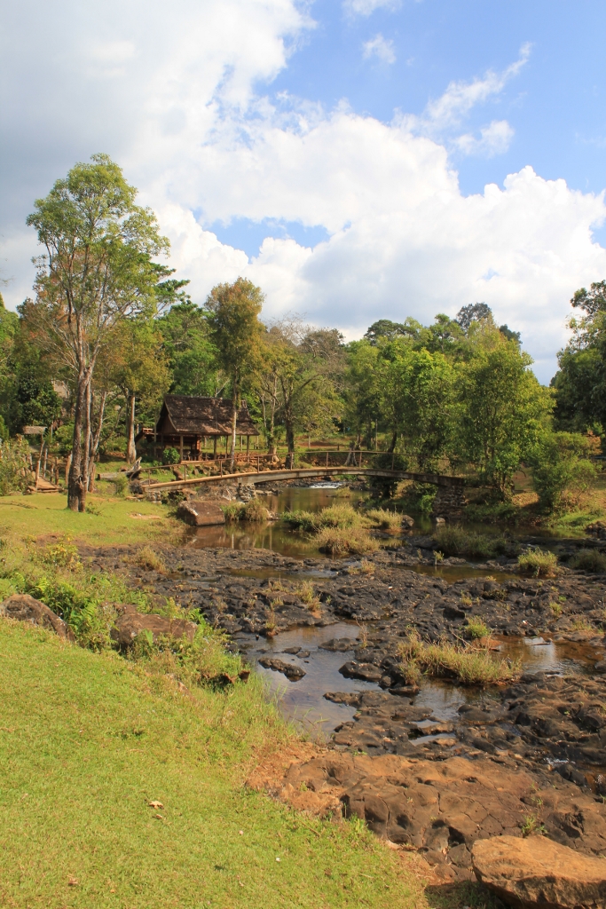 On the recommendation of a fellow tourist we then crossed the road (on bike) to Tad Champee. In hindsight, we should have missed this out as it took a 3km dirt track to reach the Falls. Although it is apparently a nice place to swim (albeit shaded with cool water) we reached there at around 4pm and only really had time for a couple of photos from the rickety bridges before we felt we should push back to Pakse as we had to get our bus from the Lankham at 7:30. As we had been climbing much more on day two we seemed to be drinking petrol and so the petrol gauge was nearing a quarter tank at this point. Fortunately there are numerous petrol stations dotted along the route and we put another 10,000 kip in the tank after Tad Champee to see us through.