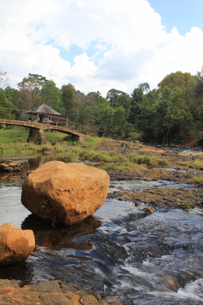 The staff at Sayse resort did not seem overly keen to assist guests, despite a large dining area that has a great setting looking out upon the falls; they stopped serving dinner by 8pm and seemed to be hard to track down for lunch or breakfast. We ended up having dinner at a guesthouse across the rickety bridge (Anna refused to ride the pillion as we crossed the bridge) and breakfast at the Tad Lo lodge as no-one seemed around to serve breakfast at our own accommodation.