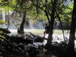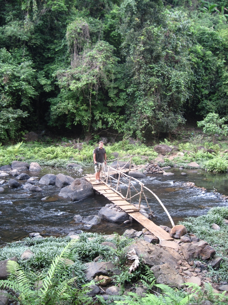 After lunch on day one, we had a cooling swim in the base of Tad Huang and trekked up to find Tad Lo and try to see the elephants. My advice for swimming in waterfalls is to ensure you’re your swimming shorts will actually stay up under pressure. Despite realising during whitewater rafting and windsurfing that the elastic in mine had seen better days I had yet to find a pair I preferred to my luminous green shorts (they were bought for a stag do) and the waterfall at Tad Lo almost robbed me of my dignity. Fortunately the language barriers there meant that the locals did not spring to my assistance when Anna saw me battling against some rapids and so I was able to emerge with my shorts intact by myself. Although we saw the elephants in the distance we were not able to see them bathing and finding the actual Tad Lo fall itself was quite a challenge (although essentially following the river works out fine).
