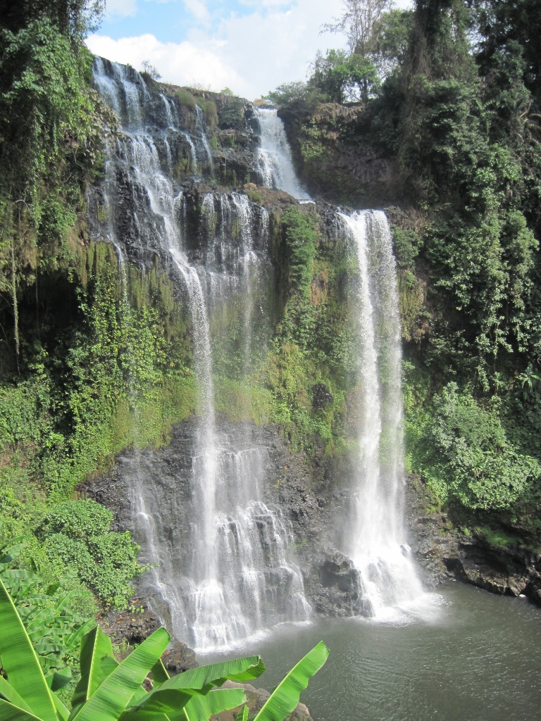 We reached Paksong (the main coffee growing area) after 60km, earlier than anticipated and stopped off at Kaiffe’s Coffee, as recommended by Lonely Planet. Paksong was at a much higher altitude and was a lot cooler with threatening rain clouds. Although the espresso Mr Kaiffe served for 10,000 kip (about $1.25) was pleasant, it was not the experience we had hoped for as he spent most of the time moaning about business with a local. Fortunately it did not take long to take our drinks and we headed on to Tad Yuang, about 40km out from Pakse. By the motorbike parking for Tad Yuang (3,000 kip per bike and 5,000 kip per person entry) was the modern Paradise Café which served a great lunch and better coffee than Mr Kaiffe (they had imported their machines from Italy) and I would recommend this as a stop rather than the less scenic stop in Paksong. Mr Kaiffe’s Laos wife normally organises tours but she was away the day that we visited.