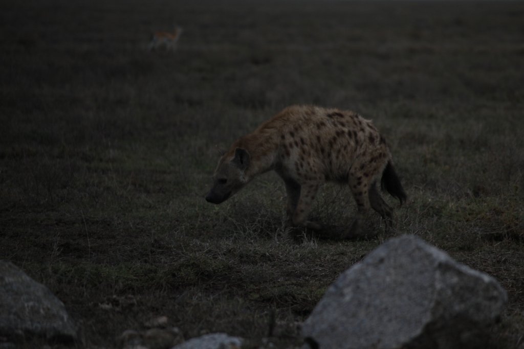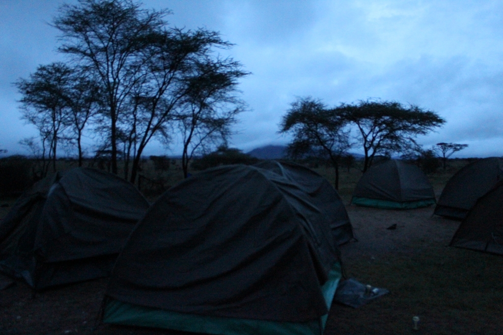 The campsites in the Serengeti and on the crater were much more open and as a consequence we had more opportunity to experience the wildlife. Jay (the guide who had left the truck to take us on the smaller trips) warned us not to camp to close to the cooking huts (those and the shower/toilet block were the only permanent structures) but not to get too isolated from the group. As a result Anna and I pitched our tents right next to Jay’s tent and we have at least lived to tell the tale…