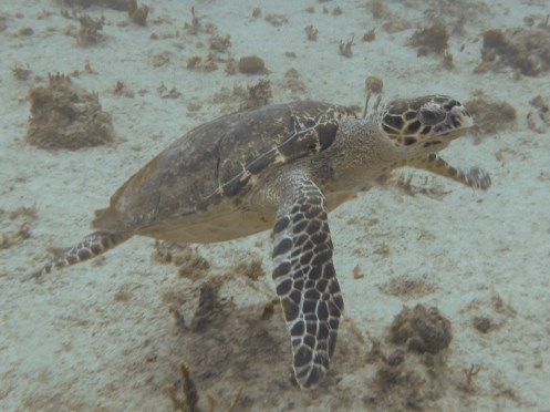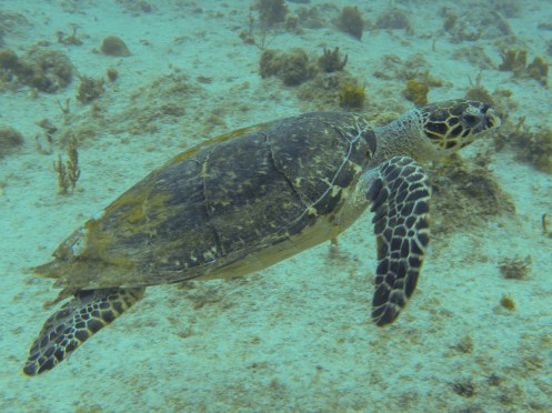 The weather in Cayman has been a bit rough as of late, but I went for a dive from Lighthouse point at the weekend and ran into a couple of turtles, including this hawksbill in shallow water. Lighting wasn’t great and I’m wondering if I should get a strobe set up rather than rely on my torch (which is effective for night shots, but doesn’t get great results on a cloudy day). Did a bit of post production on these using Lightroom. Any tips welcome!