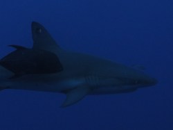 This reef shark was in Little Cayman and was accompanied by a large Jack of some sort (based on the shape, but not the colour).
